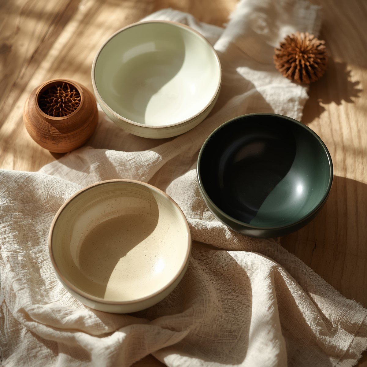 Modern interiors embrace wabi-sabi aesthetics — appreciating imperfect forms, natural textures, and handmade shapes. Asian bowls fit this perfectly, especially those with irregular rims, brushed glazes, and raw clay bases.