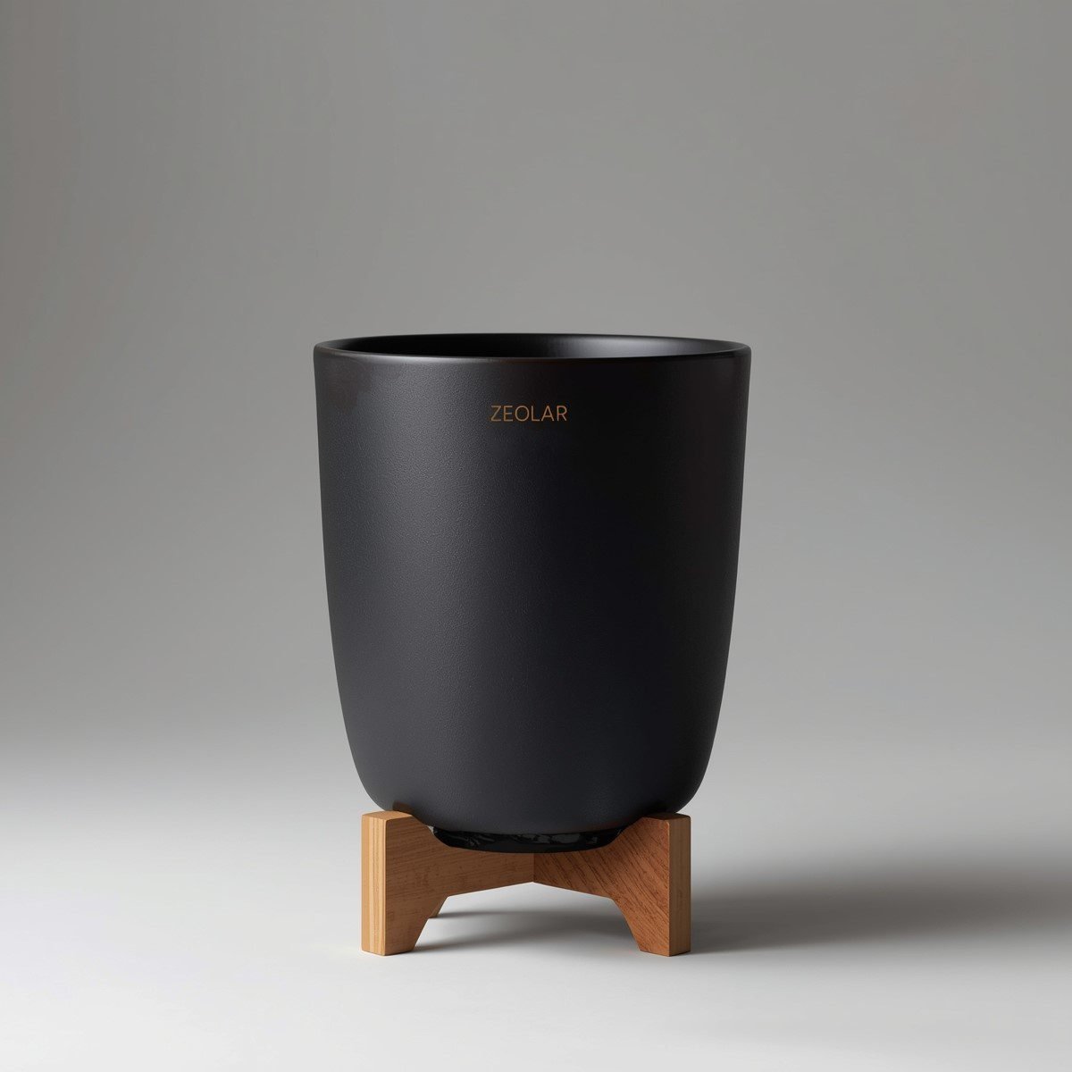 - Matte charcoal or ink-black glaze