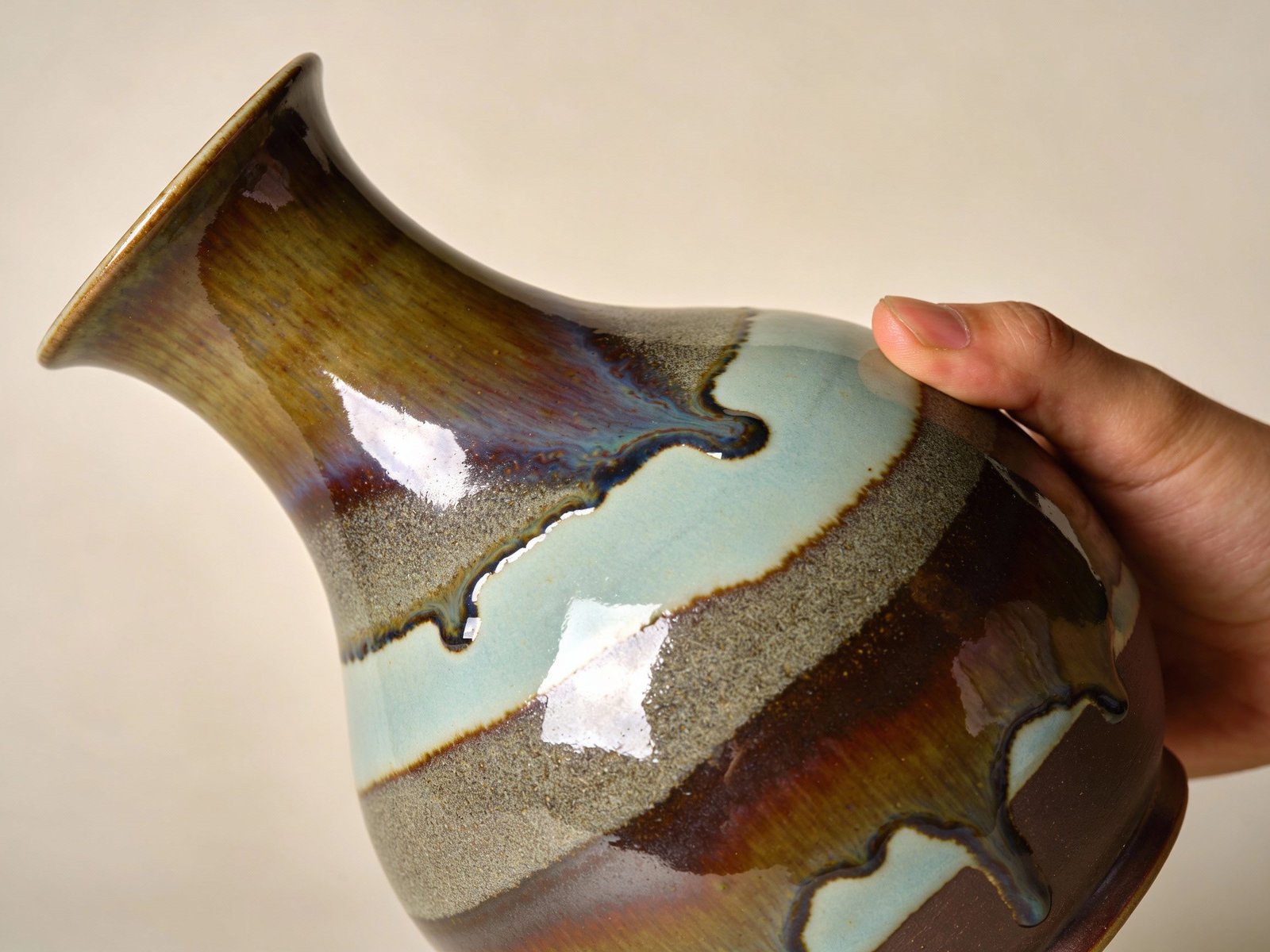 This technique creates visual transitions rather than abrupt color changes. Where glazes overlap, unexpected blends and micro-textures often appear. These intersections become the most visually interesting parts of the piece.