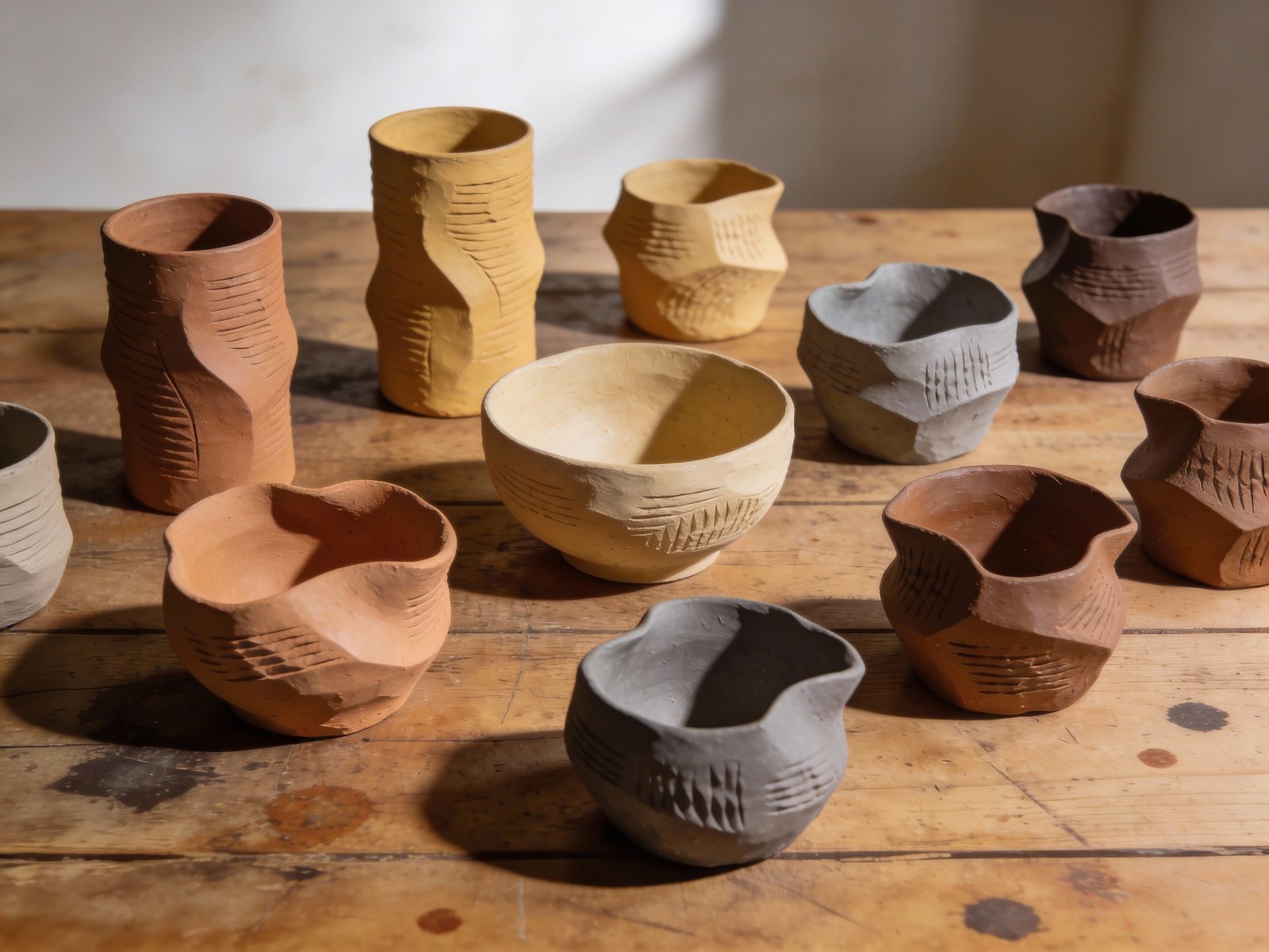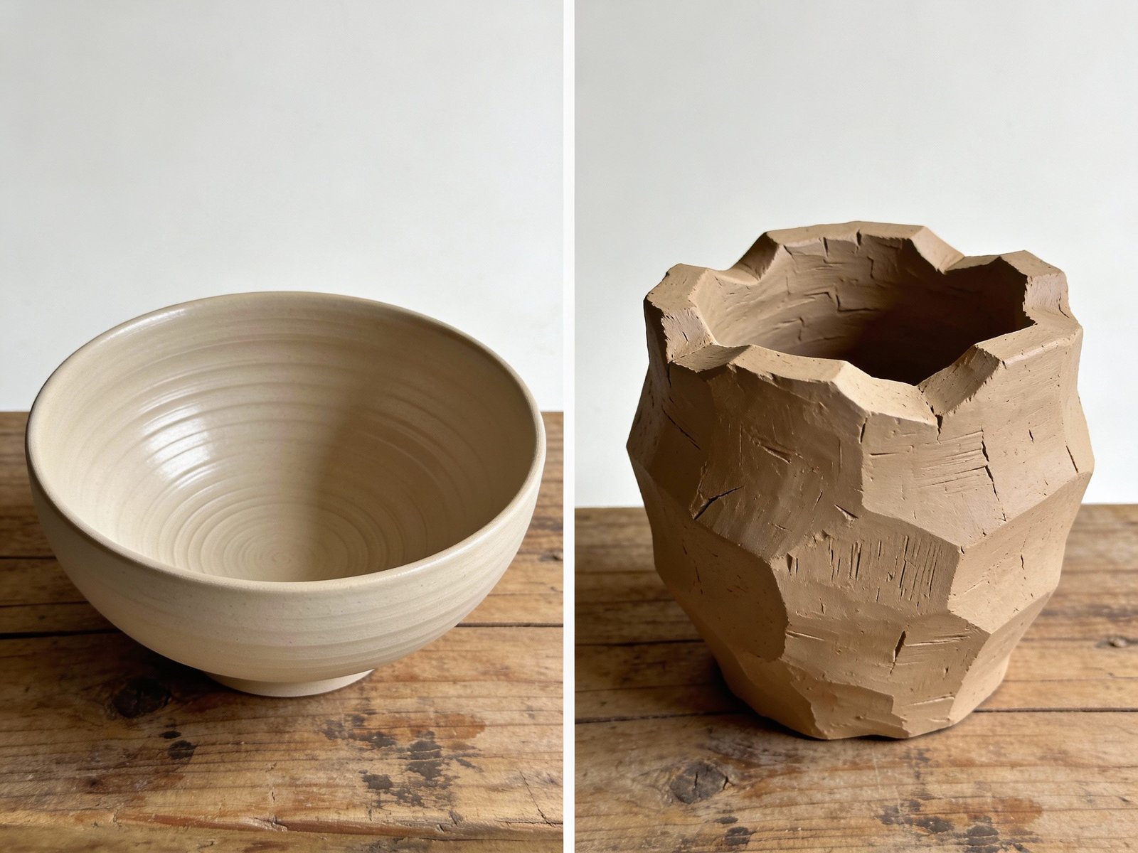 Wheel-thrown pieces often aim for consistency. Kurinuki pieces celebrate variation. Neither is better—just different languages of clay.