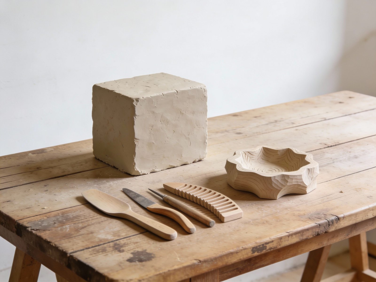 For beginners especially, kurinuki can feel less intimidating than the wheel. There’s no spinning, no collapse anxiety—just you, clay, and simple tools.