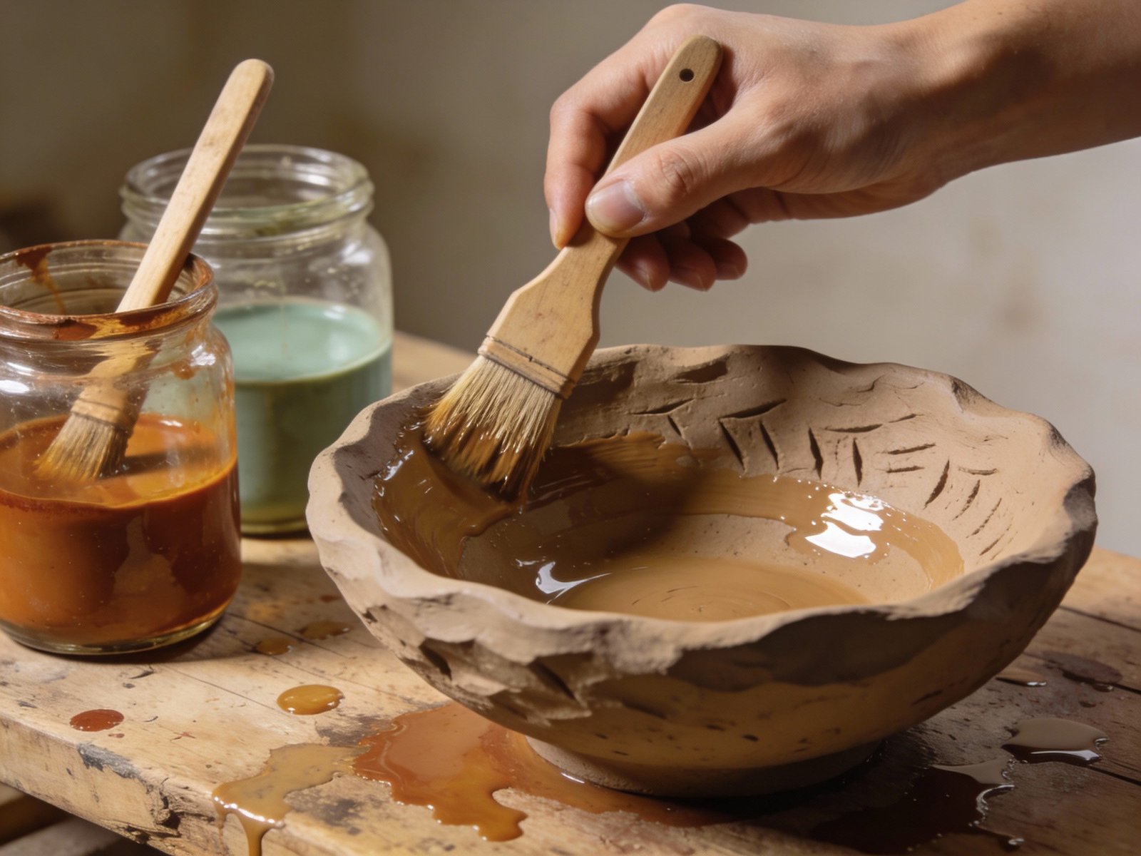 Avoid heavy, glossy glazes at first. They can overwhelm the carved surface.