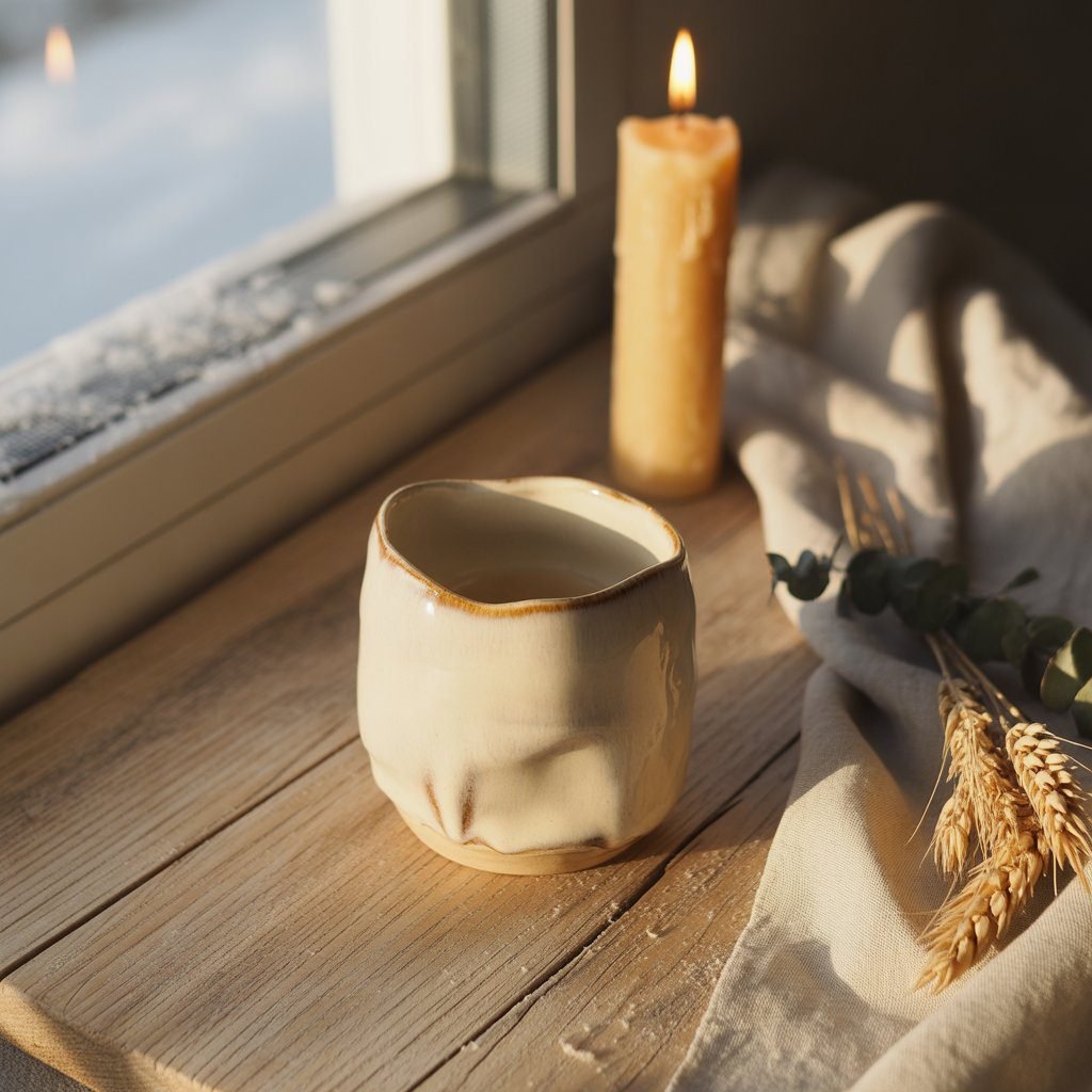 Stoneware and earthenware naturally retain a rustic character—perfect for winter. Their heavier body and rich texture give each piece a sense of grounding and stability.