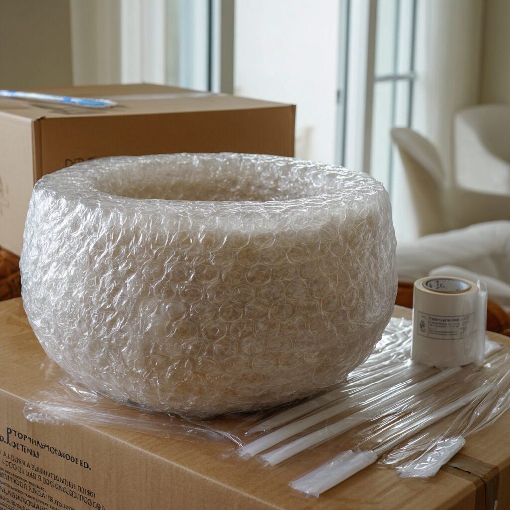 - The Golden Rule: Wrap the entire ceramic piece in 3 to 5 layers of bubble wrap. Ensure the bubbles face inward towards the ceramic surface. The smooth side should be on the outside to slide easily against the box.