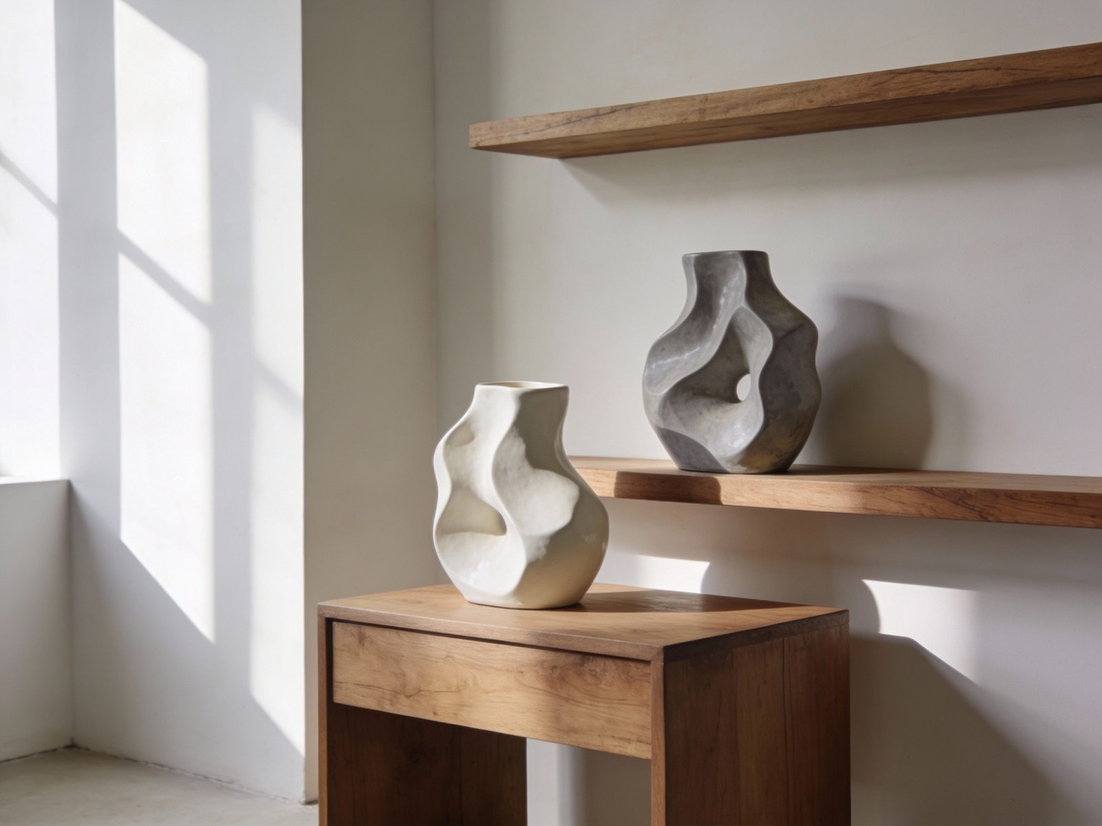 Organic ceramics soften clean lines and neutral palettes. A single hand-carved piece can break the coldness of a minimalist room.