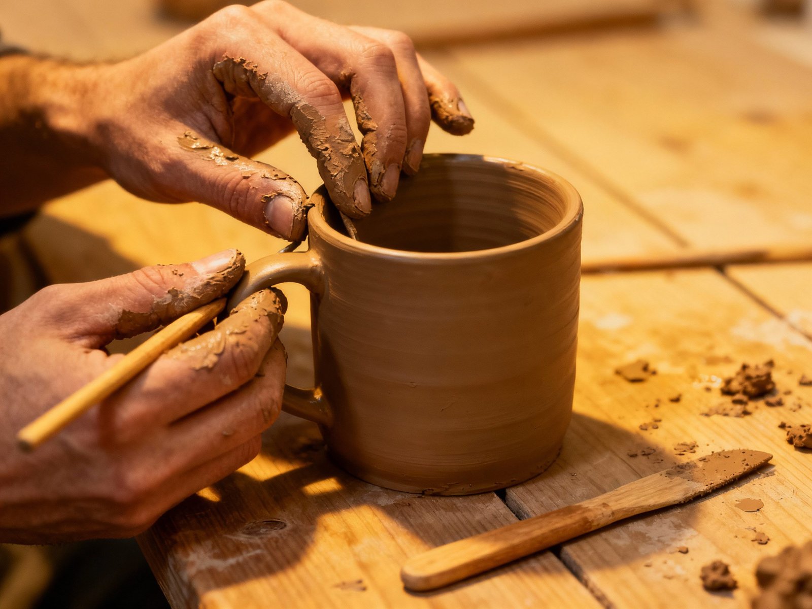 Handmaking a mug includes: