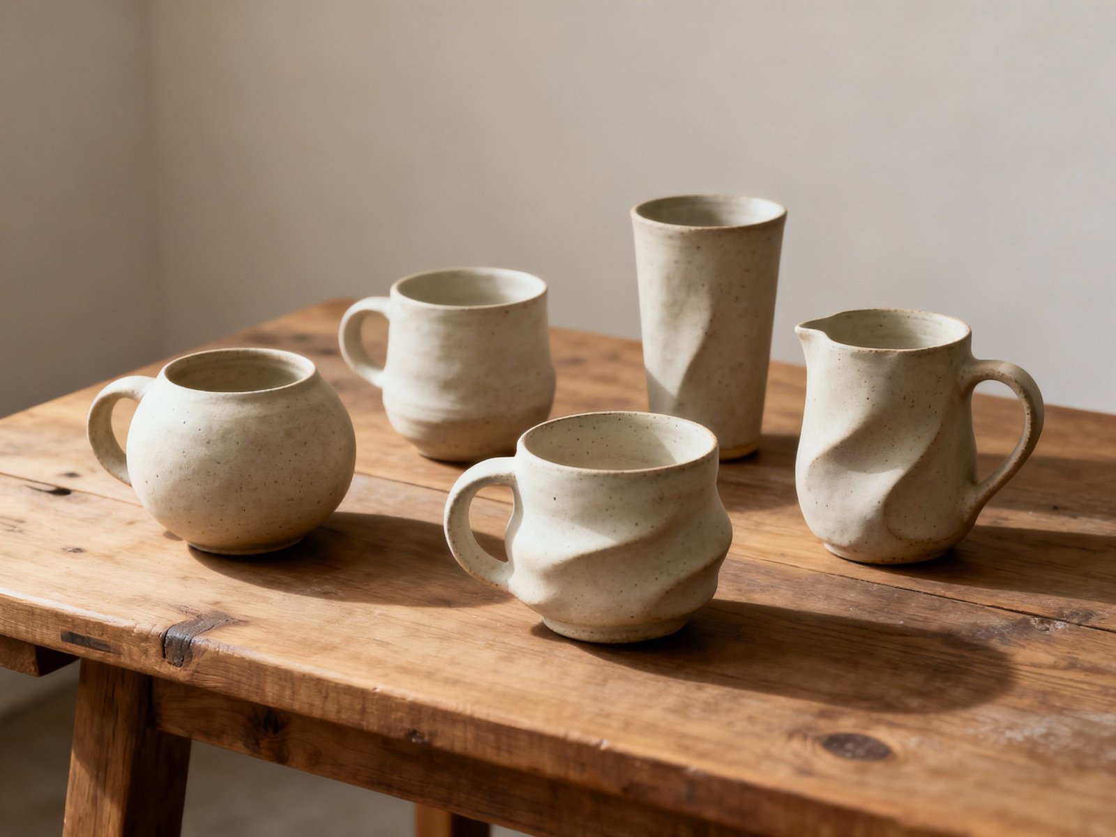 - Sculpted mugs with organic curves