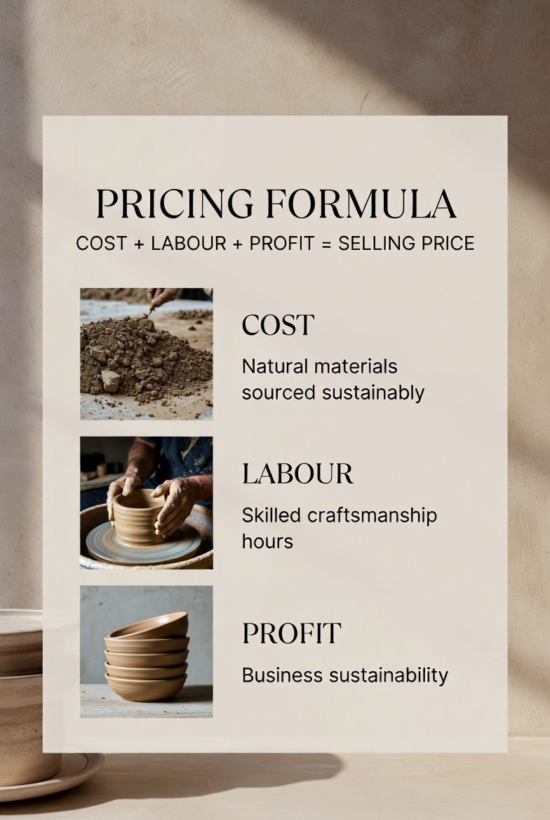 For handmade ceramics, a standard multiplier is ×4 or ×5.