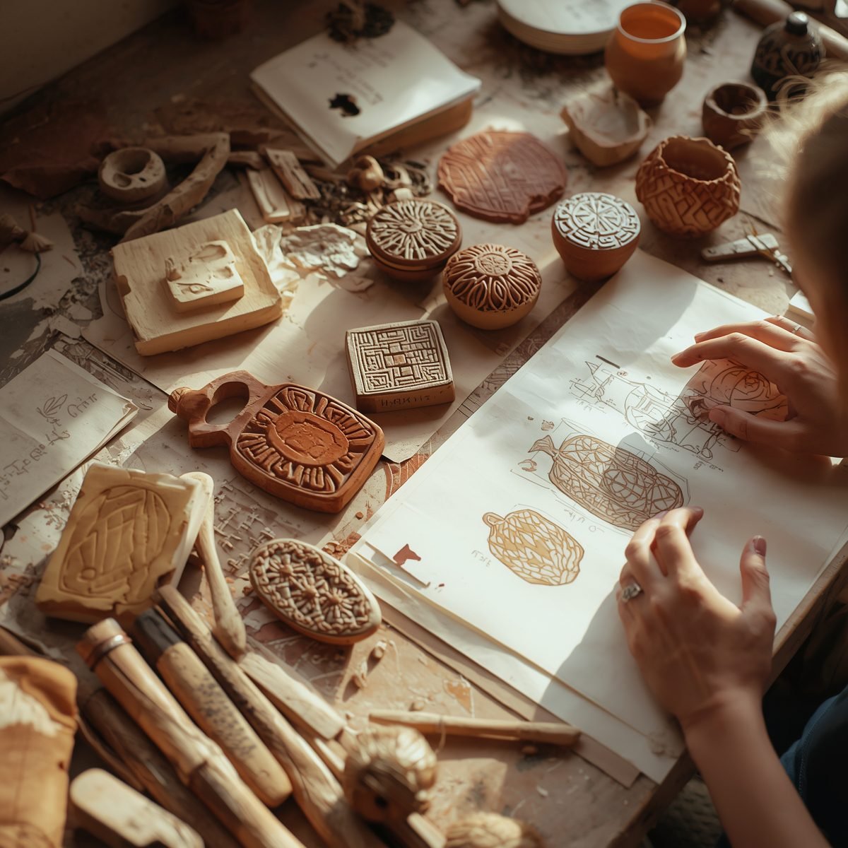 Carving into clay creates shadow depth and visual interest. Popular motifs include: