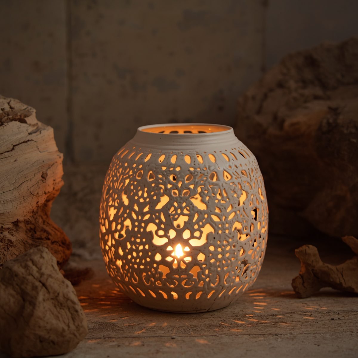 One of the most beautiful features of candle holders is how they scatter light. Artists often carve holes, geometric windows, or organic cutouts that allow warm light to escape. These openings can be round, elongated, petal-shaped, or entirely abstract.