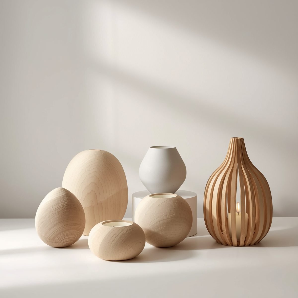 Clean lines, gentle symmetry, and simple shapes are perfect for minimalist interiors. Cylinders, cubes, arches, and spheres with refined surfaces create timeless aesthetics.